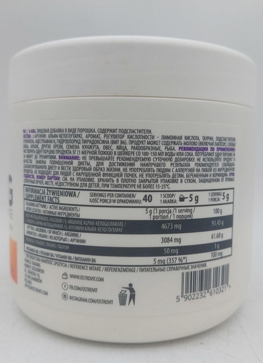 این محصول ممکن است حاوی شیر (شامل لاکتوز)، سویا، بادام زمینی، سایر مغز ها، دانه های کنجد، باشد. یا ممکن است ترکیبات مشابهی با این محصولات داشته باشد. برای همین هم ضروری است که قبل از مصرف، اطلاعات روی بسته بندی AAKG 200 OstroVit را به صورت کامل