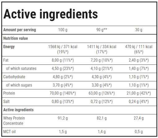این پروتئین ۶۰ گرم پروتئین در هر وعده برای کمک به تغذیه ماهیچه ها و در حالت آنابولیک فراهم می کند. شکلات تیره Ronnie Coleman King Mass به سیل عضلات شما با پروتئین ، کربوهیدرات ، گلوتامین و کراتین کمک می کند ، که ممکن است به بهبود بعد از جلسه تمرین شدید کمک کند.